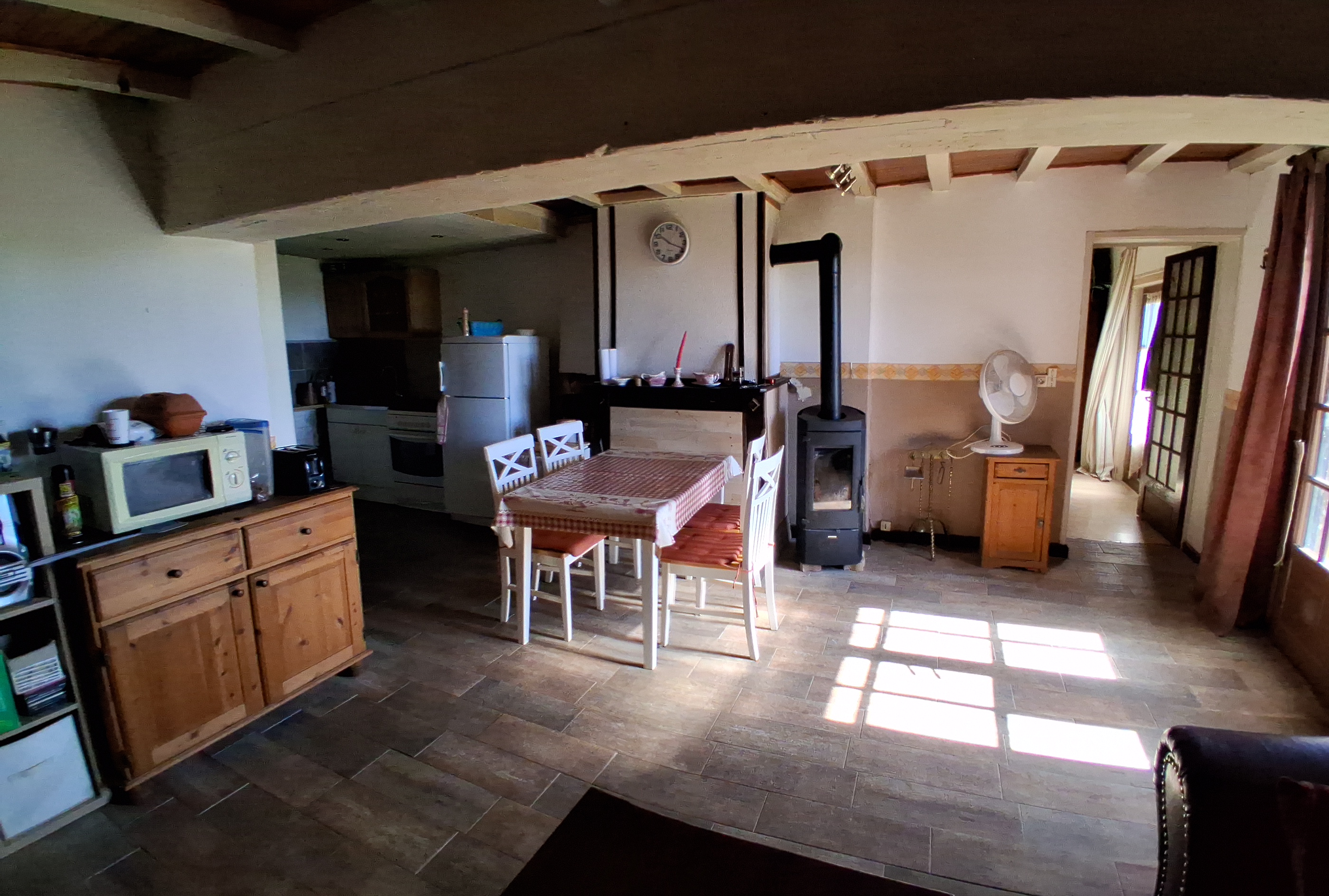 | A 2 km du bourg, fermette mitoyenne sur un côté à conforter offrant sur 58 m² : pièce de vie avec poêle à bois, une chambre, un bureau, salle de douche et WC ; grenier aménageable, bûcher, écuries et ancienne chambre à four. Le tout sur 2 138 m² de terrain clos. | |||||||||