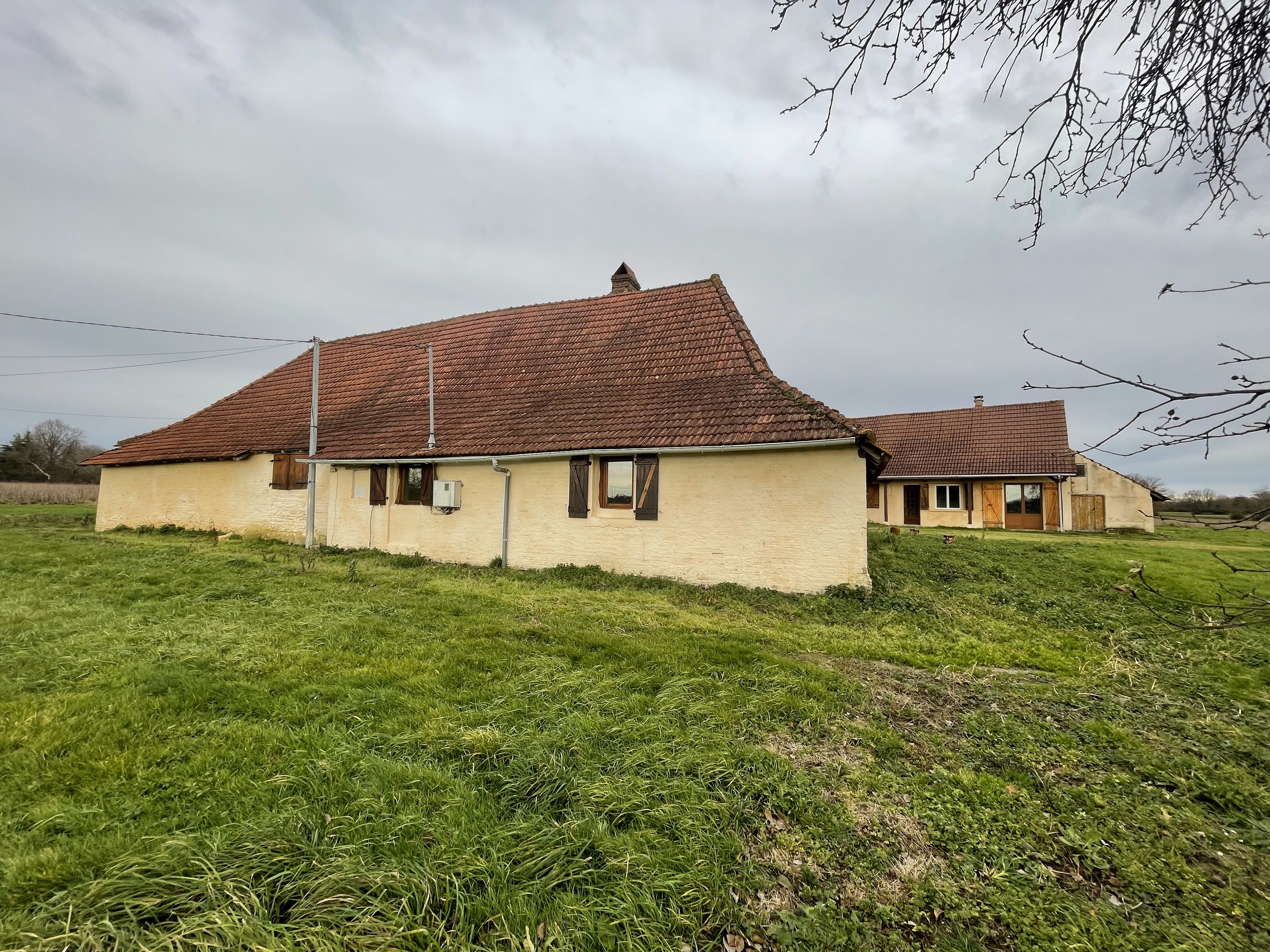 | Au calme, ensemble immobilier composé deux maisons à rénover : - la première comprend, sur une surface habitable de 100 m², une cuisine, une salle à manger, une chambre, un dégagement avec un escalier, une salle de bains avec wc ; à l'étage, une chambre avec dressing, un bureau, des placards et une petite pièce ; deux remises attenantes et un abri. - La deuxième, d'environ 80 m² habitable, entièrement de plain-pied, se compose d'une cuisine, d'une salle à manger avec cheminée, d'une chambre, d'une pièce pouvant faire office de seconde chambre, un cellier, une salle d'eau avec wc ; une grange et un garage attenant. Pas de système de chauffage. Le tout sur 5 169 m² de terrain non clos.